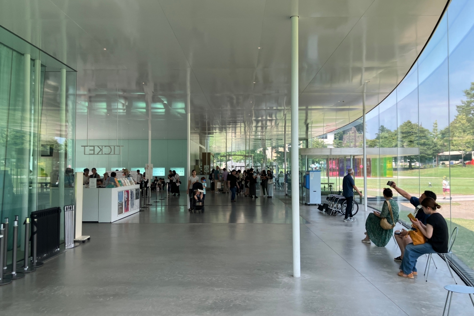 前に行ったときはあまり気にしてなかったのですが、天井・壁・床に外の景色や人を映りこんで豊かな光に満ちています。