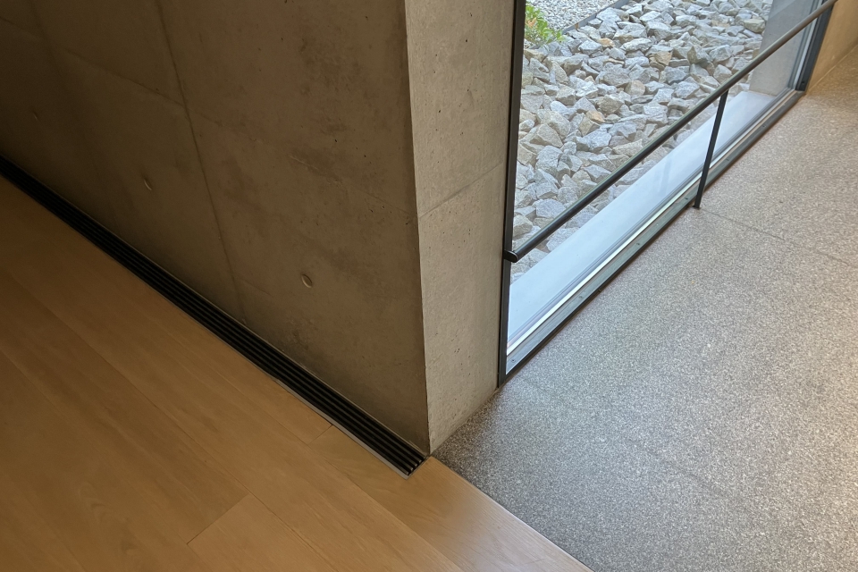 洗練された素材とディテール、必要なものだけがあるべきかたちであるという建築の境地で、ラインが完璧にそろえられたディテールなど、施工誤差という概念がないのだろうか。。。