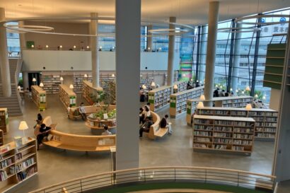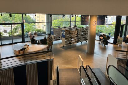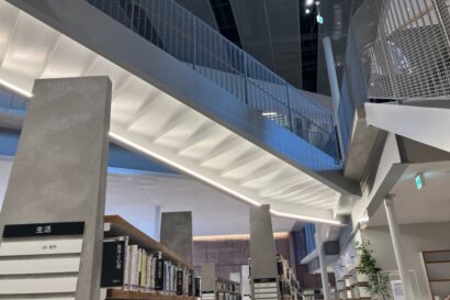 茨木市に点在していたホールや図書館、子育て支援センター、プラネタリウムなどの機能を1箇所に集約した複合施設です。中央のエスカレーターによる縦動線は階ごとに角度が振られ、単調な移動動線ではないシークエンスを提供していました。様々なイベントが行われているフロアを眺めつつ、あるいは横切りつつ、上階にあるライブラリーに向かいます。縦動線が様々なアクティビティや賑わいを掠めるように配置されており、来る日によって見る風景が大きく変わるのだろうと思います。家具のデザインも秀逸で、人々に愛される公共建築といった雰囲気でした。メディアテークのスラブとチューブによる構成との対比を感じました。