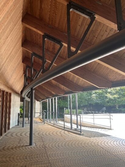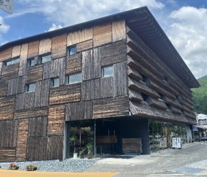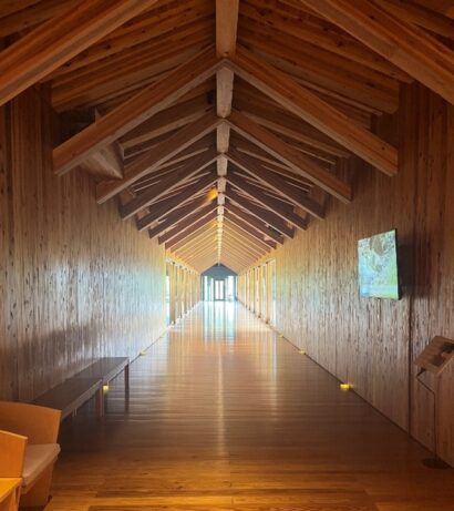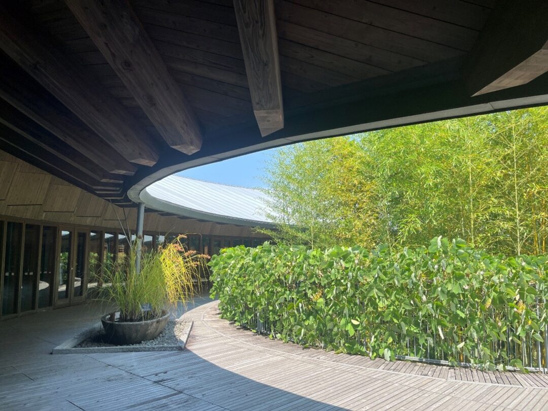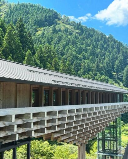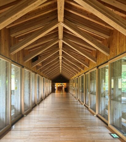 大自然の中に突如現れる、木組が特徴的な建築だった。