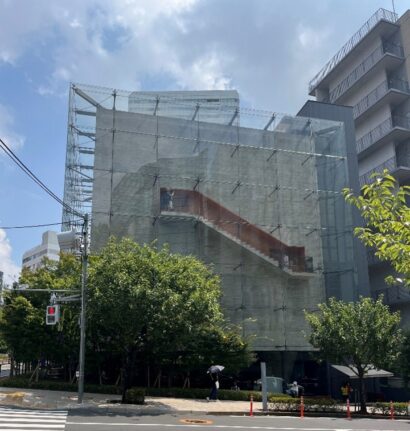 コンクリートのキュービックをガラスで覆う外観は大胆でありながら、内藤氏らしい繊細なディテールが随所に見られ、非常に興味深い建築だった。