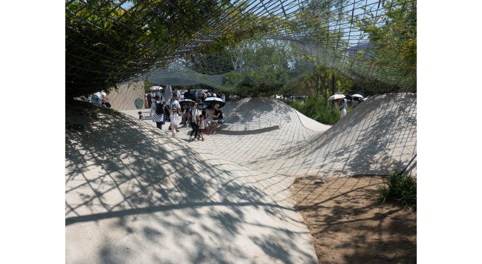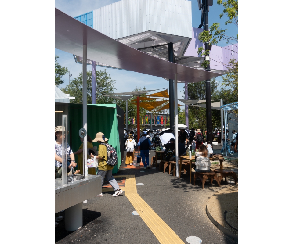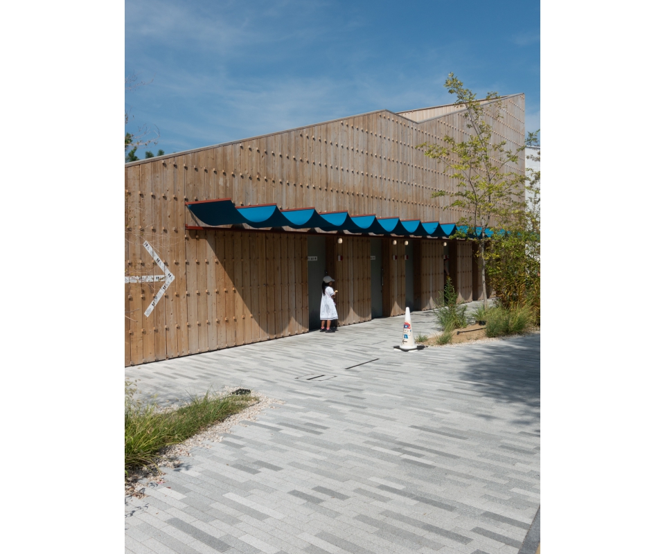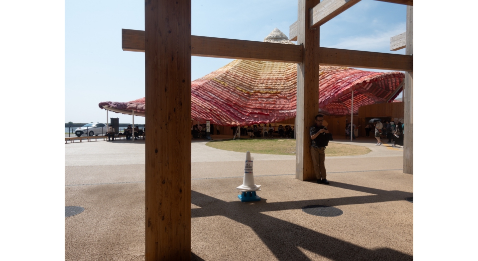 はじめに、若手建築家のトイレや休憩所、パビリオンなどを巡りました。それぞれの興味の方向に向かって思考するエネルギーを感じた一方で、建築家の意図や恣意性がどこまで社会的な意味を持つか、常日頃考えフラットな視点を忘れない必要があると感じました。