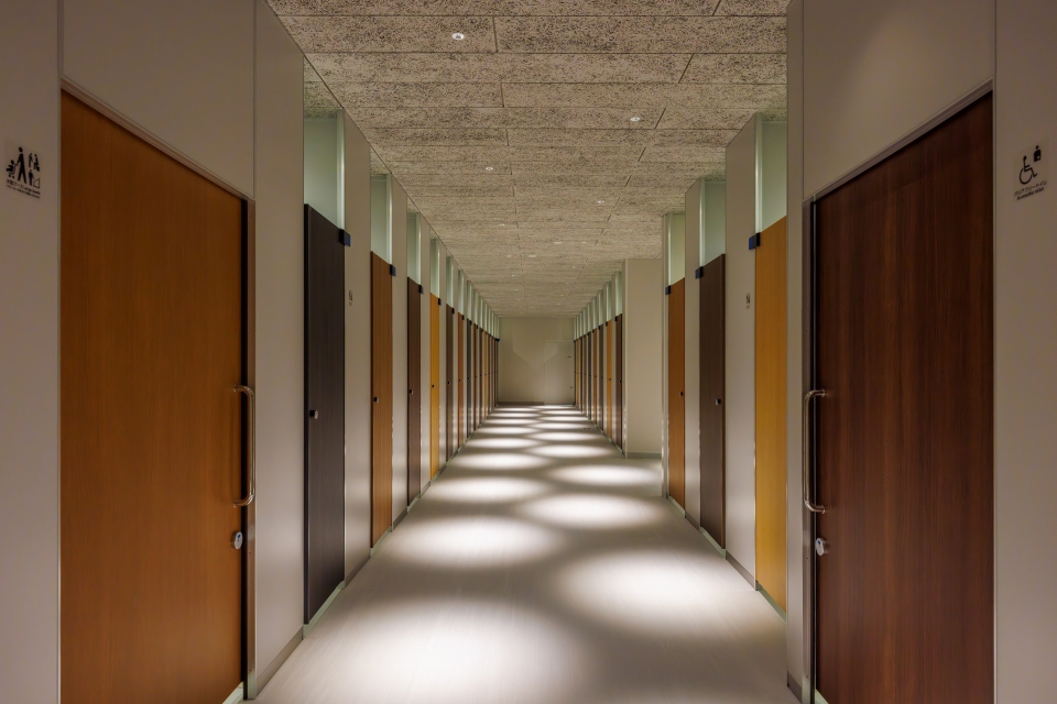 構造は鉄骨でブレース構造を採用し経済性に配慮しました。正面となる場所にはX柱を配置、雁行させたガラスファサードと重なることで、湘南らしい海のきらめきを表現しています。環境デザインの観点として、Low-Eガラスの採用や太陽光設備、高効率機器の採用により、Nealy ZEBを達成、BELS認証を取得しています。